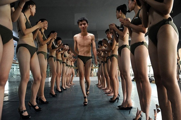 ps恶搞图片:帅哥在美女中T台走秀!
