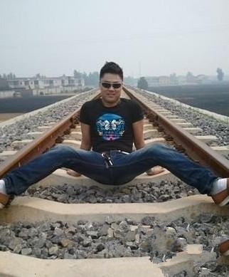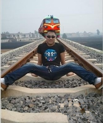 ps恶搞图片:哥在铁道上劈叉!
