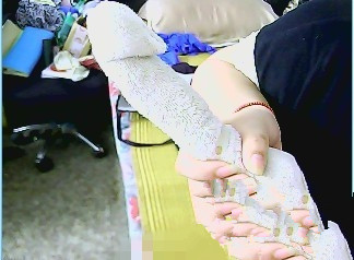 邪恶图片:美女你的左手咋啦 怎么好似乳白色的啊!